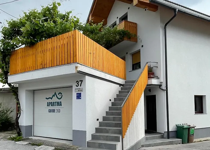 Apartma Guide 360 Apartment Bovec features views of the garden and is situated 6 minutes on foot from Denkmal Am Predilpass. Guests can relax and take in city views from a terrace of this apartment.